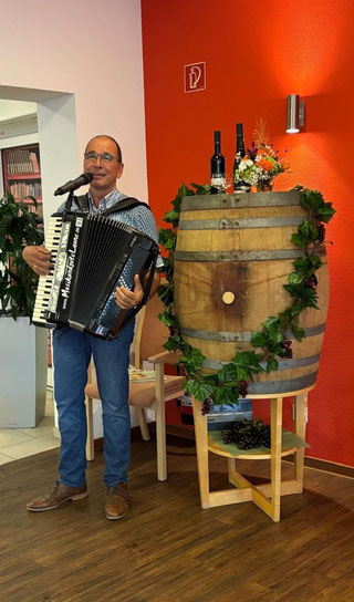 Weinfest im Domhof, Bonn - Mehlem. Sehr geselliges Zusammensein mit Scheidken-Wein und gutem, gutem Essen.